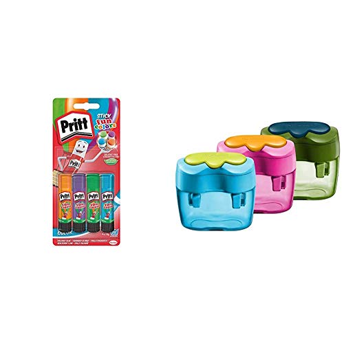 Pritt colle stick Fun Colors, colla colorata per bambini, per lavoretti e fai da te & Pelikan 10921112 Temperamatite Fancy Doppio Foro Con Contenitore - Colori Assortiti