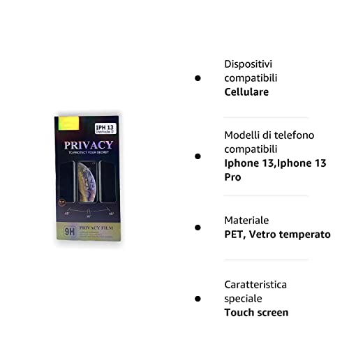 9H Mate Privacy Anti-spia Proteggi Schermo in Ceramica Flessibile - Anti frattura - per iPhone (iPhone 13, iPhone 13 Pro)