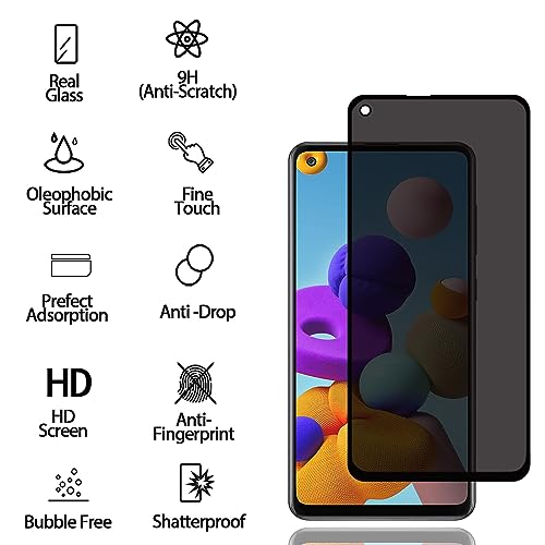 Privacy Pellicola Protettiva per Samsung Galaxy A21s [2 Pezzi], Privacy Vetro Temperato, Vetro Temperato Film Anti-Spy, Durezza 9H, Antigraffio, Anti-Spia Protezione Schermo per Samsung Galaxy A21s