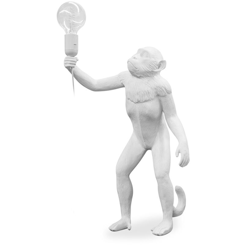 Originale, di impatto, alla moda... sono tanti gli aggettivi adatti a questa lampada da tavolo di design che rappresenta una Simian in piedi. è realizzato interamente in resina opaca. Questa scimmia in piedi sostiene una lampadina che illuminerà alla perfezione una stanza ampia con design e stile. Scegli la lampada da tavolo di design con la Scimmia in piedi, e stupisci tutti i tuoi ospiti. Lampadina non inclusa. Dimensioni: 27.5 cm x 46 cm x 54 cm (L x l x A)