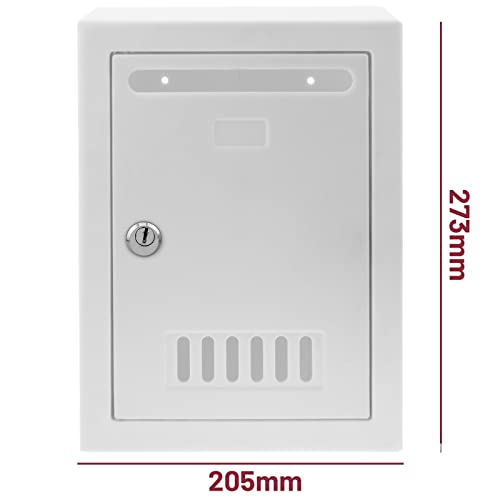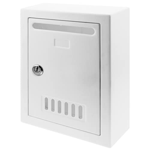 CARATTERISTICHE: La cassetta delle lettere presenta un design classico ed è realizzata in plastica di alta qualità verniciata di bianco. Vengono fornite 2 chiavi per aprire la porta d'ingresso. La porta di raccolta della posta misura 6,3" x 9,25". Lo slot di consegna della cassetta postale misura 13,5 x 1,3 cm.