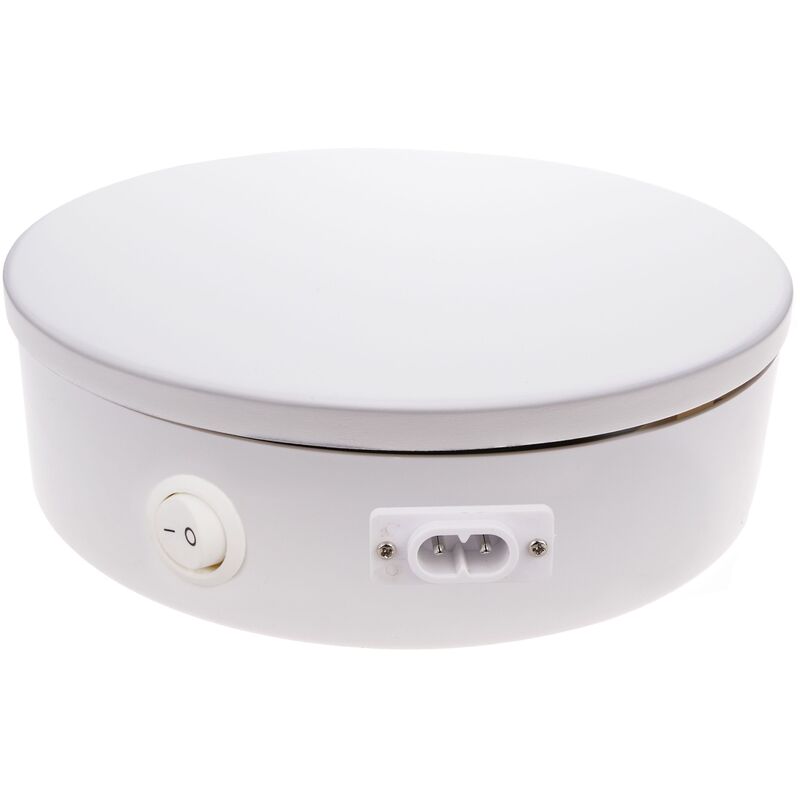 Piattaforma rotante di varie dimensioni tra cui scegliere. Consente di ruotare gli oggetti in modo motorizzato per scattare foto di una pagina web, ad esempio per una vetrina. Per metterlo in funzione deve essere collegato a una rete elettrica br> Caratteristiche del prodotto DESIGN: Base girevole motorizzata o manuale bianca con la possibilità di scegliere la dimensione desiderata, questi sono realizzati in MDF e il resto in plastica ABS CARATTERISTICHE: Piattaforma girevole, che le permette di ruotare in senso orario o antiorario agevolmente nonostante abbia una frizione che permette alla base di frenare o accelerare anche quando è accesa, può essere collegata direttamente alla rete 220 VAC che gli permette di gira in 240 secondi, può sostenere anche 50 kg MISURE: La base girevole ha una misura di 50 cm di diametro e 6 cm di altezza con una rotazione di 360° MATERIALE: Realizzato in plastica bianca UTILIZZO: Le basi girevoli permettono di posizionare diversi oggetti e di farli