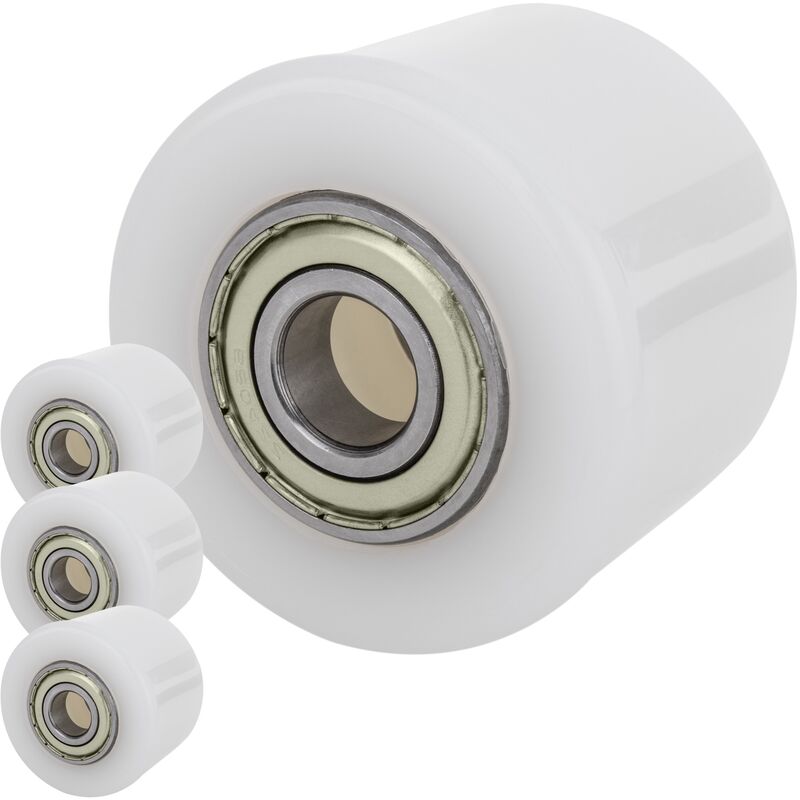 Confezione da 4 ruote in nylon bianco di alta qualità con grande resistenza per transpallet e carrelli di trasporto. Ogni rullo è strutturato da un corpo e da un battistrada in nylon con cuscinetti in acciaio che ne smussano la rotazione. Caratteristiche del prodotto: CARATTERISTICHE: La possibilità di girare le ruote a 360° permette di cambiare la direzione del movimento in modo estremamente agevole e agevole, il che rende ancora più agevole il trasporto del carico. FUNZIONALITÀ: Le ruote garantiscono una maggiore operatività e ne facilitano l'utilizzo nei lavori che richiedono un movimento costante. IDEALE: Per la sostituzione delle ruote per transpallet e carrelli di trasporto in caso di usura o rottura. CARICO SUPPORTATO: ogni ruota supporta un carico di 600 kg. I rulli consentono una rotazione regolare con sicurezza garantita grazie ai loro materiali resistenti. DESIGN: Confezione da 4 unità di rulli bianchi con cuscinetti in acciaio argento. MATERIALI: Ogni ruota è realizzata in