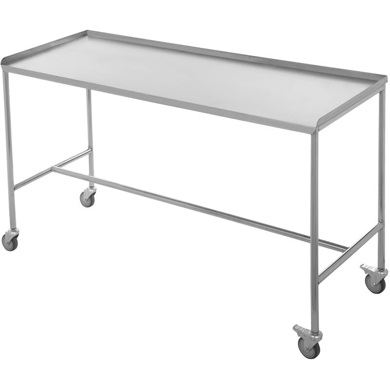 Tavolo in acciaio inossidabile utilizzato in ambienti medici, come cliniche, ospedali e studi medici. Ha una superficie superiore liscia con creste circostanti che viene utilizzata per contenere strumenti chirurgici o altre forniture mediche aggiuntive mantenendoli in posizione durante il trasporto e l'uso. È ideale per mantenere gli strumenti e le forniture mediche organizzati e alla portata del medico o del personale medico durante il trattamento dei pazienti. Caratteristiche del prodotto: CARATTERISTICHE: Tavolo porta ferri chirurgici dotato di 4 ruote di cui due con sistema frenante per una presa sicura. Ha un ripiano superiore piatto con bordi per il posizionamento e la manutenzione del materiale medico, durante la cura del paziente. Inoltre, la superficie liscia e facile da pulire del tavolo aiuta a mantenere un ambiente medico pulito e sterile. IDEALE: ideale per l'uso in ambienti medici dove sono richieste mobilità e flessibilità. Perfetto per mantenere un ambiente medico