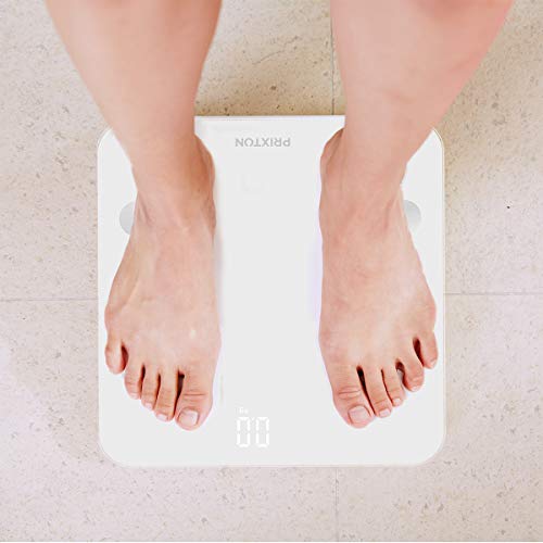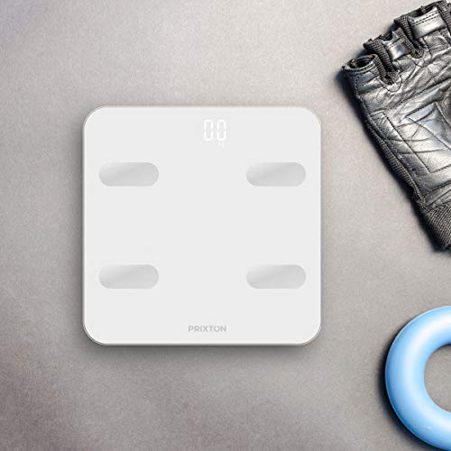 PRIXTON BC300 - Bilancia pesapersone Digitale, Smart, Elettronica e Professionale con 4 sensori di Alta precisione e 13 funzioni, Bluetooth, App Compatibile per 9 utenti, unità di Peso kg/LB