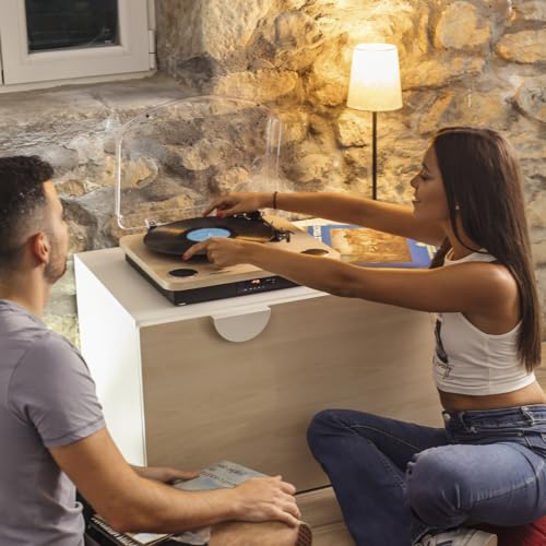 Audio technica giradischi con coperchio antipolvere progettato in venatura del legno.