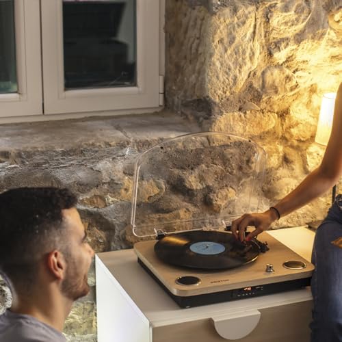 PRIXTON - Giradischi Marconi - Riproduttore e Convertitore di Vinili tramite Bluetooth, USB, MicroSD, Radio - 2 altoparlanti integrati - Coperchio Antipolvere