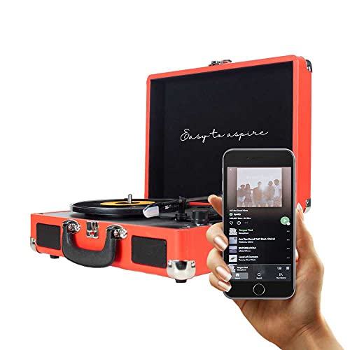 PRIXTON - Giradischi in vinile vintage, lettore in vinile e lettore musicale tramite Bluetooth e USB, 2 altoparlanti incorporati, design valigia, colore rosso | VC400 (ricondizionato)