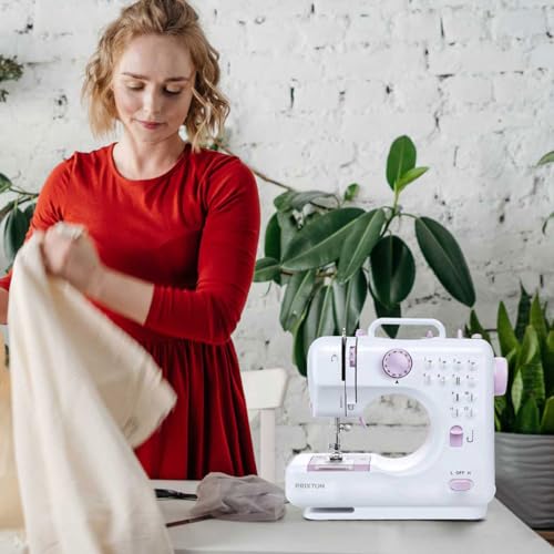 PRIXTON - Macchina da cucire portatile P110 - Cassetto per accessori - Lampada integrata - 12 punti di punti - Pedale incluso (Rosa)