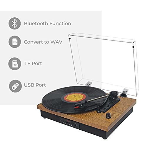 Gira dischi per vinile Vintage con bluetooth 5.0per connettere il tuo dispositivo smartphone e riprodurre musica. Integra 2 speaker da 5W.