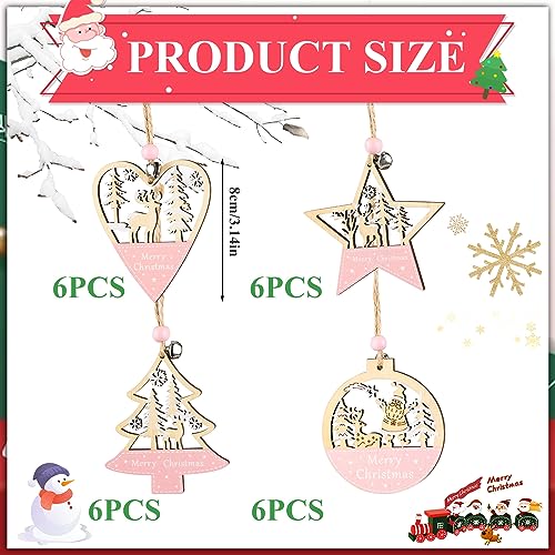 Prmape 24 Pezzi Addobbi Albero di Natale Legno, 4 Stili Natale Ciondolo in Legno, Appeso Ornamenti Pendenti Legno Natalizi Decorazione per Decorazioni Albero di Natale Fai da Te