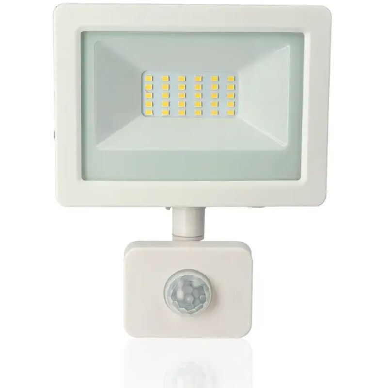 PRO LED PRO25 Questo proiettore sottile da esterno è dotato di un sensore di prossimità regolabile da 2 a 8 metri, a seconda delle esigenze dell'utente. Questo proiettore ha una potenza di 20W, necessita di una tensione di 220V (standard per uso domestico), ha una temperatura di colore pari a 4000K (luce naturale), un angolo del fascio luminoso di 120° e una garanzia di 2 anni . Tutta la gamma di questi proiettori hanno il corpo in alluminio e il coperchio in vetro temperato, questo permette di avere un indice di protezione IP65 ;
