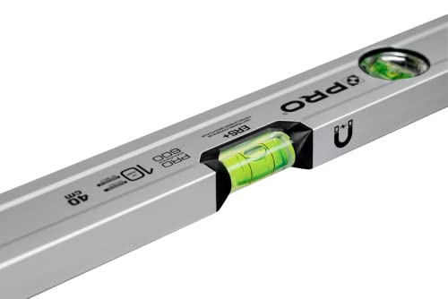 PRO600 Livella a Bolla con magneti 40cm Anodizzata - Durezza 9 sulla scala Mohs - Profilo Ergonomico e Sistema ERS+ (Easy Reading System) - Tappi di chiusura antiurto - Colore Argento