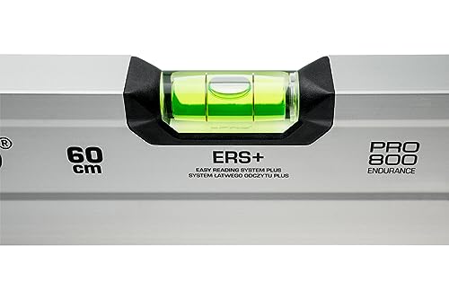 PRO800 Livella a Bolla 60cm anodizzata - Durezza 9 sulla scala Mohs - Profilo Ergonomico e Sistema ERS+ (Easy Reading System) - Tappi di chiusura antiurto - Colore Argento