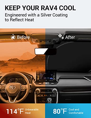 Mantiene fresco: progettato con un rivestimento in argento per riflettere il calore, riducendo l'accumulo di calore fino a 4,4 °C e bloccando il 99% dei dannosi raggi UV. Mantenete il vostro RAV4 fresco e impedisce ai sedili in pelle di rompersi e sbiadire.