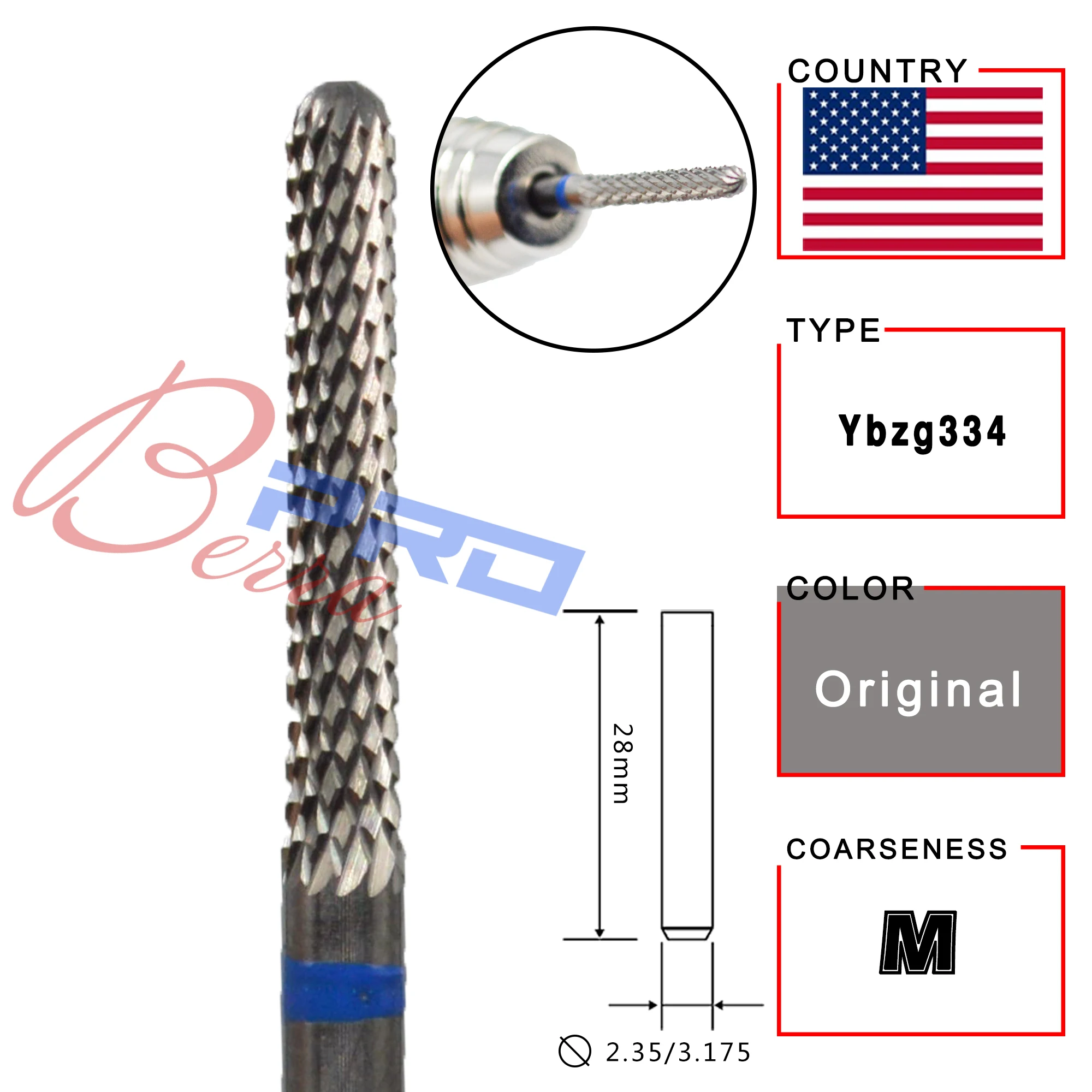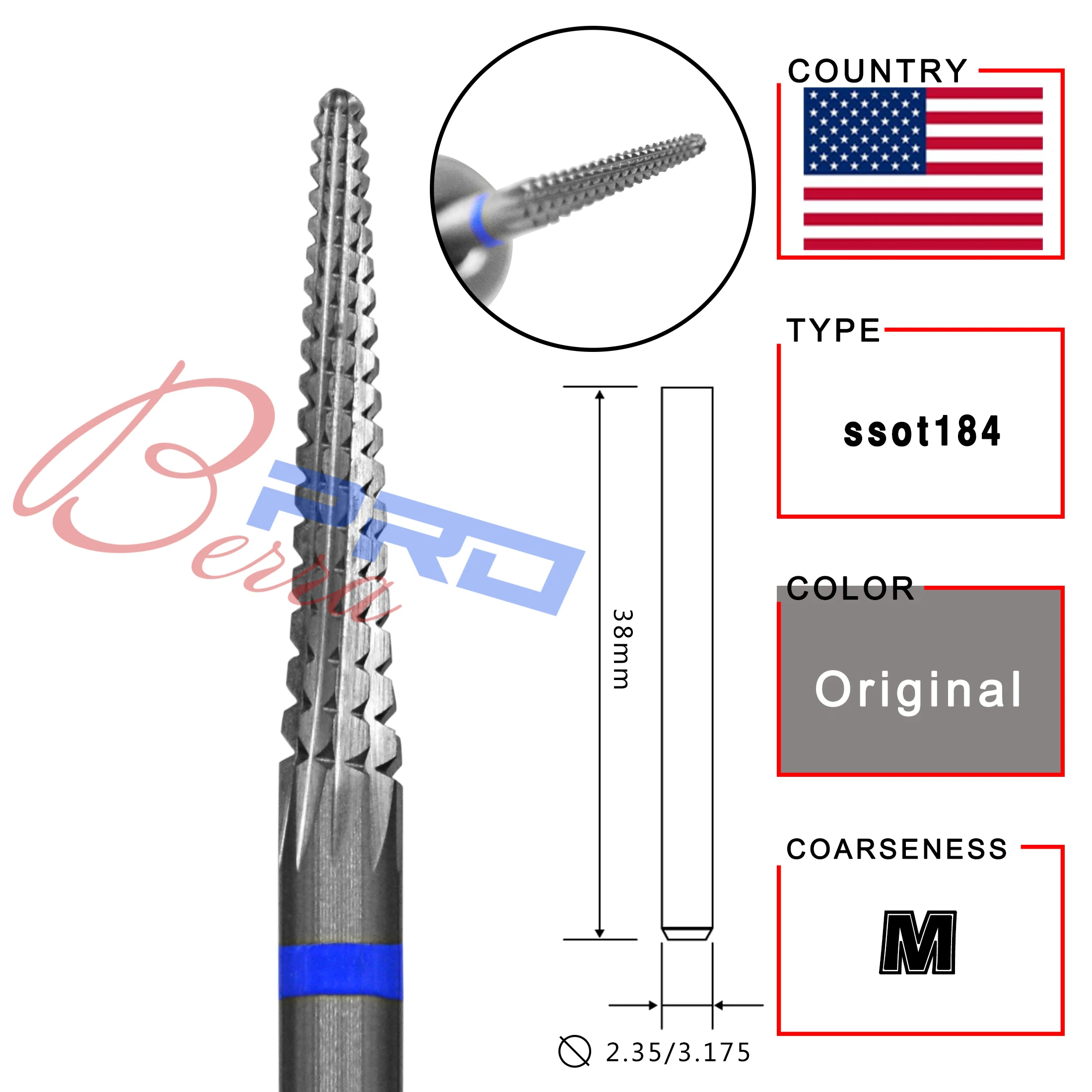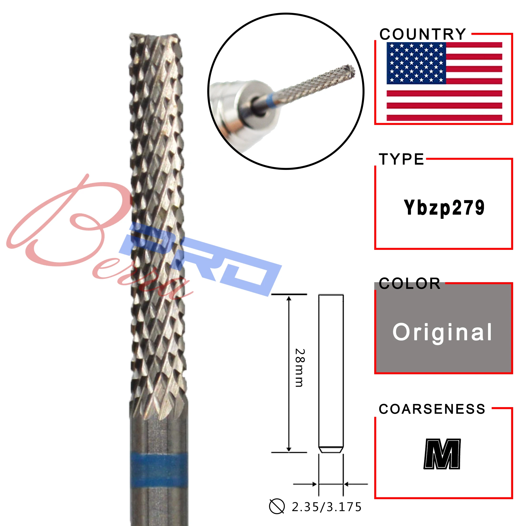 Proberra Dental&Nail slender shark tooth Straight Edge with Spiral Cut Tungsten steel Carbide acrylic dip powder nail drill bit