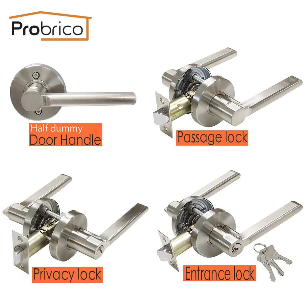 Probrico Solid door handle for interior doors Front back door Levers lock cylinder latch Bedroom Wooden gate dummy handle locks