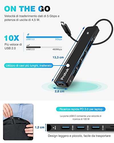 Ampia Compatibilità: L'hub usb c di Probuk è compatibile con tutti i sistemi e i dispositivi che supportano la porta USB C per l'uscita video e rappresenta la scelta perfetta per Macbook Pro/Air, desktop, Microsoft, proiettori, stampanti, Asus, Samsung, Chrome, HP, Dell, Pad, tastier