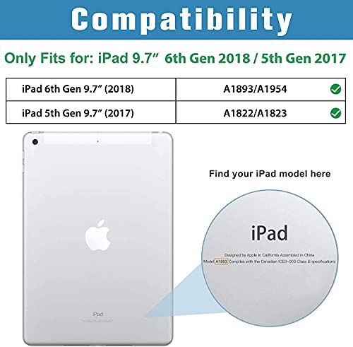 Custodia protettiva per la cover posteriore di qualità, progettata esclusivamente per Apple iPad 9.7 pollici 2018 iPad 6a generazione (numero modello A1893 A1954) / 2017 iPad 5th Generation (numero modello A1822 A1823) (non compatibile con altri dispositivi)
