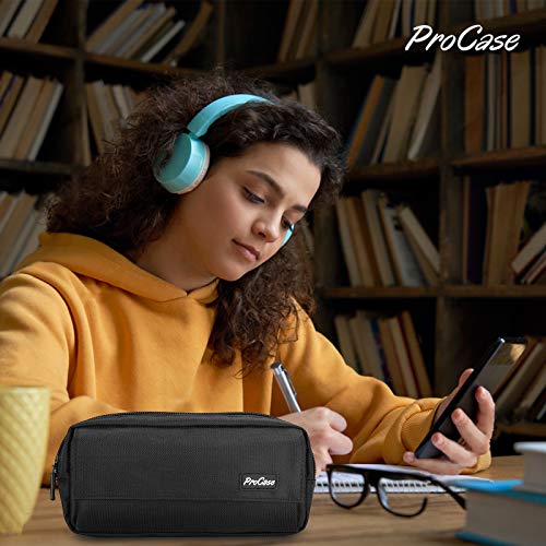ProCase Astuccio Scuola a 2 Scomparto Grande, Astuccio per Cancelleria Portatile per Ragazzo o Ragazza, Studente o Scolaro, Scuola, College o Ufficio -Nero