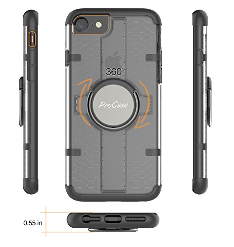 Procase - Custodia per iPhone 8/iPhone 7, con supporto ad anello girevole, supporto magnetico per auto, con supporto, per Apple iPhone 8/iPhone 7, colore: Nero