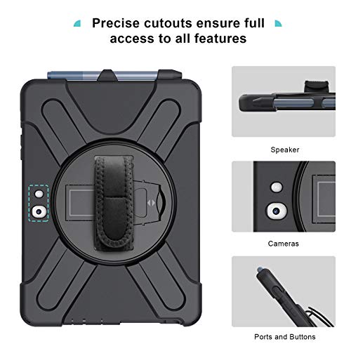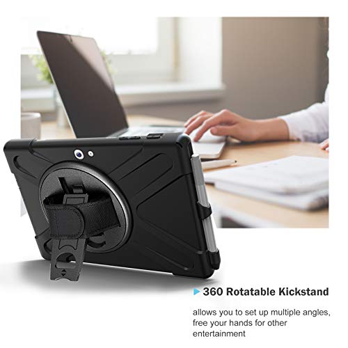 ProCase Custodia per Microsoft Surface Go 3 2021/Surface Go 2(2020)/Surface Go (2018), Rugged Custodia Protettiva Antiurto Rotante con Cinturino a Mano Kickstand Tracolla -Nero