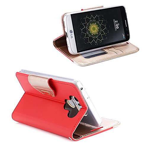 ProCase Custodia Portafoglio LG G6, Flip Cover Custodia Protettiva con Slot Carte, Specchio Cinturino, Funzione Sostegno e Morsetto Magnetico per 5.7” LG G6 2017 -Rosso