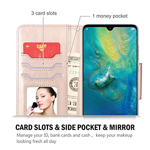 ProCase Custodia Portafoglio per Huawei Mate 20, Flip Cover Custodia Protettiva con Slot Carte, Specchio Cinturino, Funzione Sostegno e Morsetto Magnetico per Huawei Mate 20 (2018 Rilasciato) -Nero