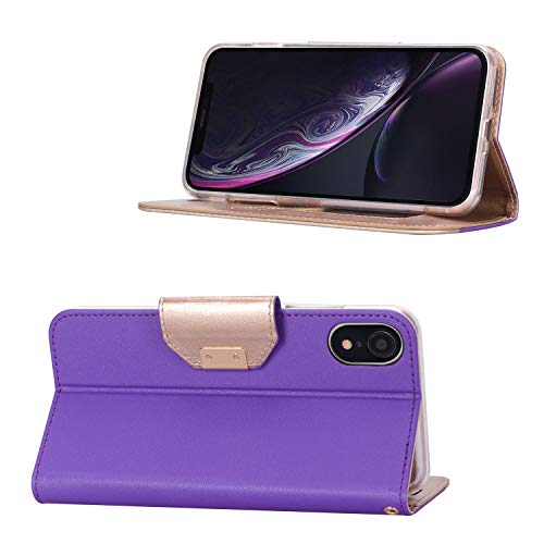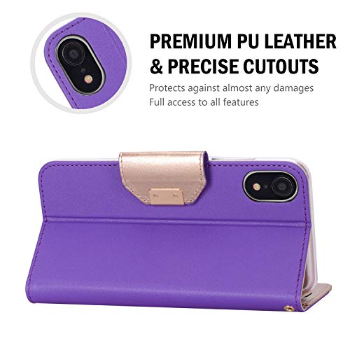 ProCase Custodia Portafoglio per iPhone XR, Flip Cover Custodia Protettiva con Slot Carte, Specchio Cinturino, Funzione Sostegno e Morsetto Magnetico per Apple iPhone XR 6.1” (2018 Release) -Viola