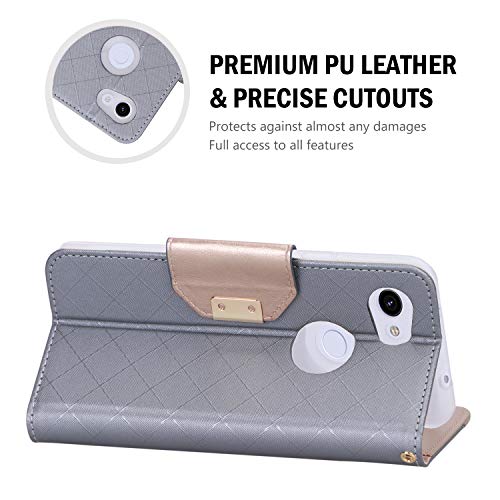 ProCase Pixel 3a Custodia Portafoglio, Flip Cover Custodia Protettiva con Slot Carte, Specchio Cinturino, Funzione Sostegno e Morsetto Magnetico per Google Pixel 3a (2019 Release) -Grigio