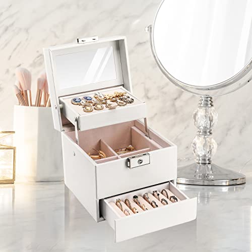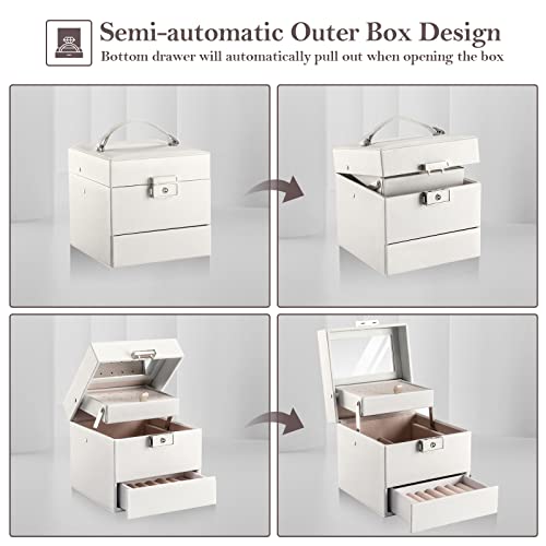 ProCase Portagioielli Donna con Triplo Strato e Chiave, Scatole Porta Gioielli Multifunzionale, Contenitore Gioielli, Porta Gioie da Viaggio -Bianco