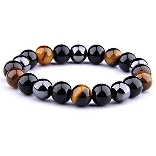 Wave Process Braccialetto Fashion Pietre Naturali Tripla Protezione Ematite Nera Ossidiana e Occhio di Tigre Uomo & Donna con Copertina Cotone di Protezione. (10 mm)