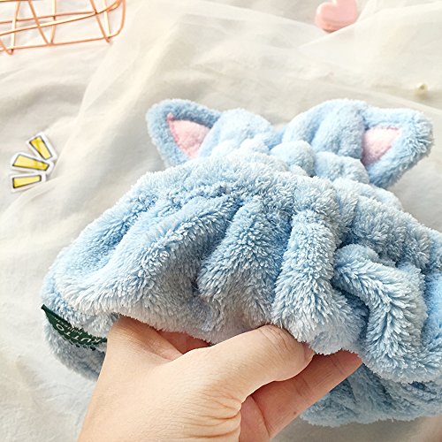 Prochive, asciugamano per capelli, in microfibra super assorbente per asciugatura rapida, design a cappello, motivo: blu con orecchie da gatto