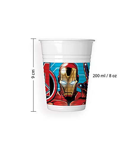 Procos- Bicchieri plastica Marvel Avengers Mighty (200ml), 8 Pezzi, Multicolore, 8 Unità (Confezione da 1), 93553