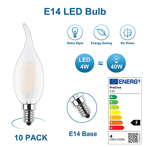 ProCrus E14 4W Lampada LED Candela,Lampadina Filamento C35 LED Forma di Candela,2700K Lampadine Candela Bianca Calda,4W Sostituisce 40W,400LM,Non Dimmerabile,Confezione da 10,Classe Energetica F