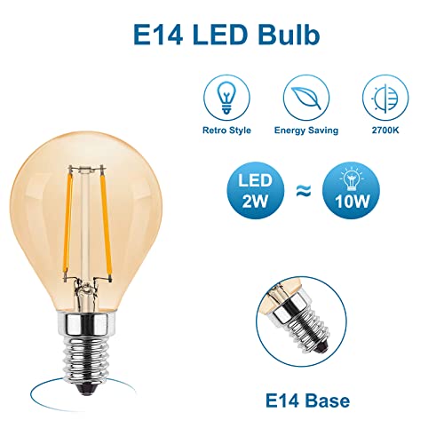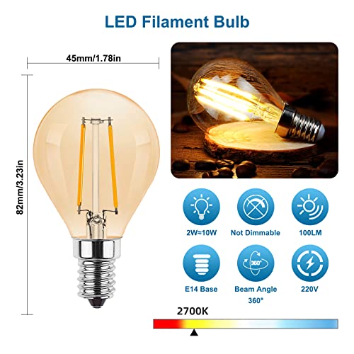 ProCrus G45 2W Lampadina LED, E14 Vintage 2W Edison LED, Retro Illuminazione LED Filamento, Bianco Caldo 2700K, 100lm 10W Lampadina A Incandescenza Sostituzione, Non Dimmerabile, Ambra, Lotto di 10