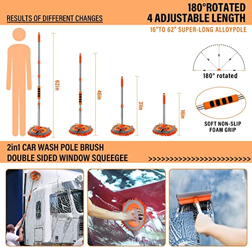 Set di tergicristalli 2 in 1, collegato con 4 barre telescopiche, raschietto per finestre da 62 pollici con morbido tessuto in microfibra per vetro e lama gommata per un'asciugatura rapida e senza residui.