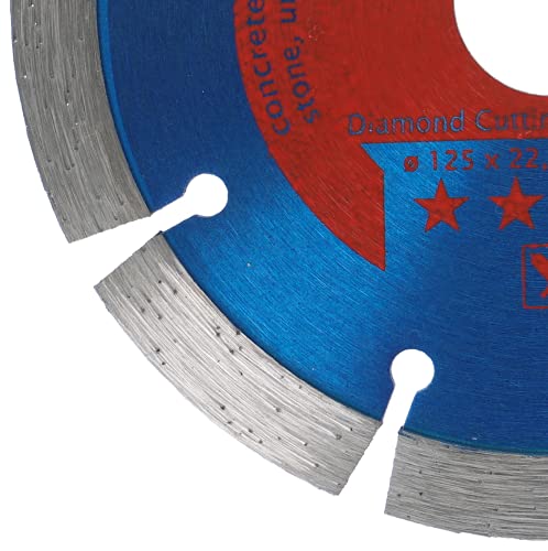 Disco diamantato da 125 mm con foro 22,23 mm, altezza segmento 10 mm, adatto per smerigliatrici angolari delle marche Bosch, Makita, Festool, Flex, Metabo, Würth, Einhell, Hitachi, Milwaukee, DeWalt, Fein, Black & Decker, LUX e altre ancora, con mandrino filettato M14