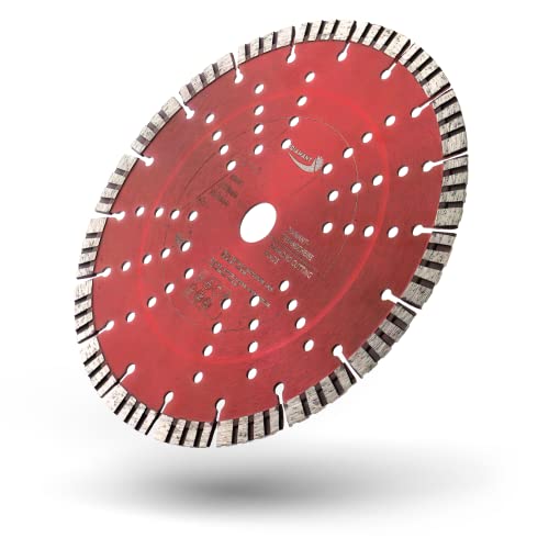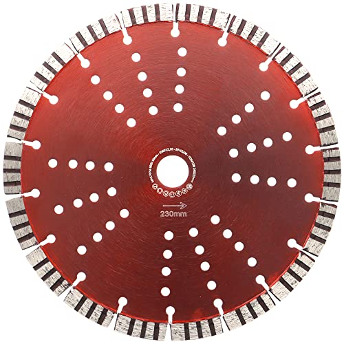 Disco diamantato da 230 mm con foro da 22,23 mm, segmento turbo longlife da 15 mm, adatto per smerigliatrici da taglio, cacciatori di troncatori, tagliapiastrelle a benzina, macchina da taglio per pietra, sega ad acqua, sega da pavimento di tutte le marche