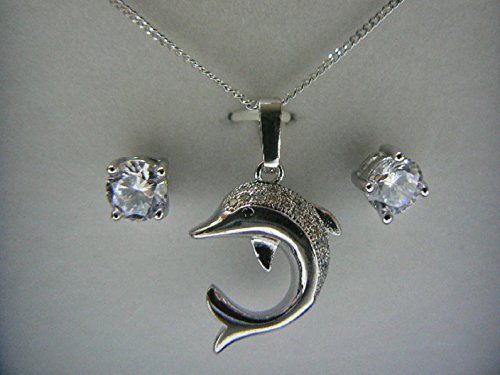 Prodigital Gioelleria Dalù: Set Collana e Orecchini placcati argento in varie forme esclusive con zirconi bianchi (delfino_strass)
