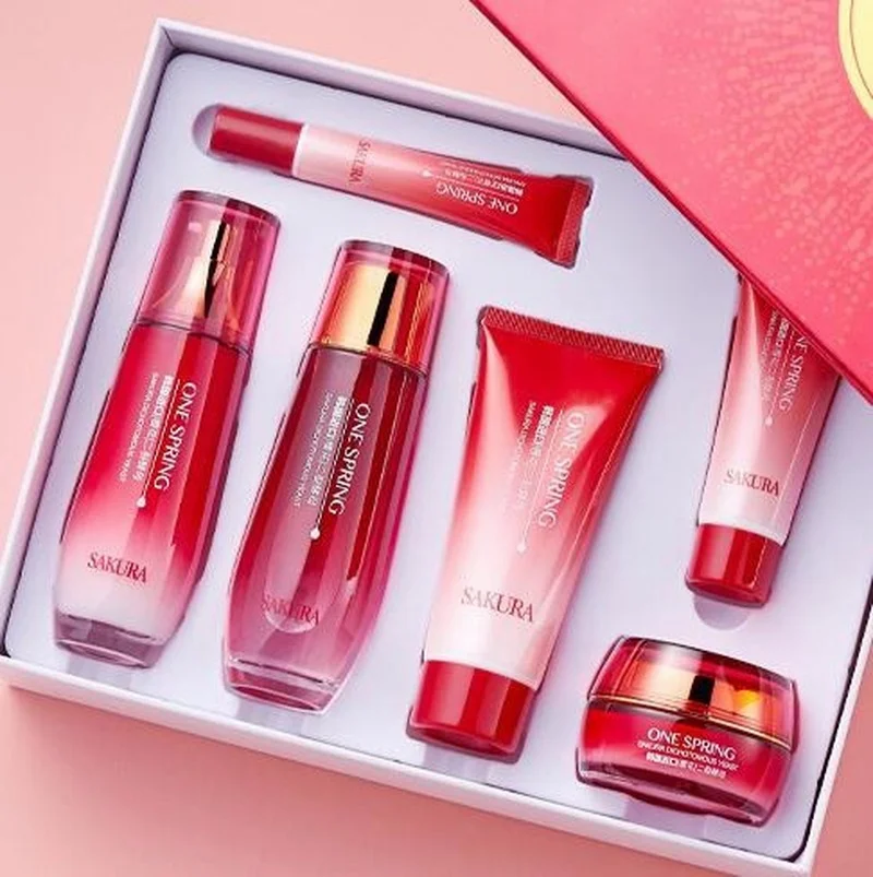 New Product Sakura Double Yeast Six-piece Set To Rejuvenate Skin and Shrink Pores Soothes Repairs Redness Firming Moisturizing