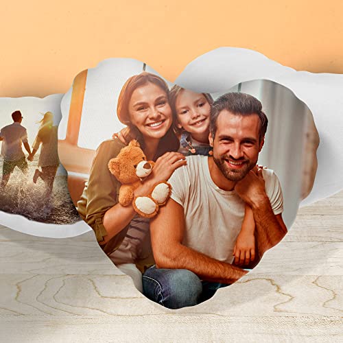 AL PRODUCTION Cuscino Cuore Personalizzato con Foto - 40 x 40 cm - con Imbottitura (bianco)