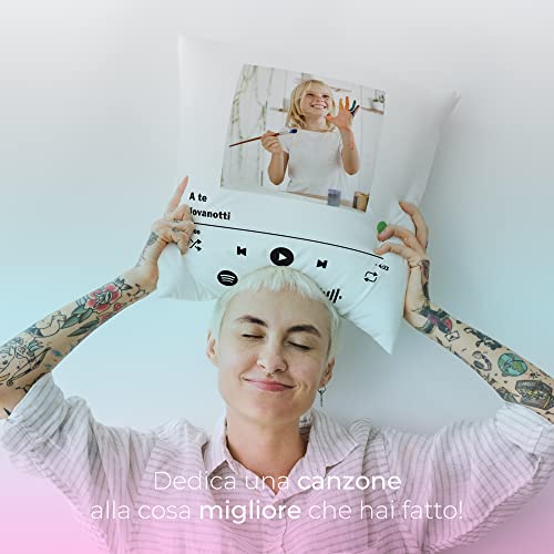 AL PRODUCTION Cuscino Spotify Music Personalizzato con Foto, Testo, Immagine - Codice scannerizzabile per la tua musica, idea regalo San valentino!