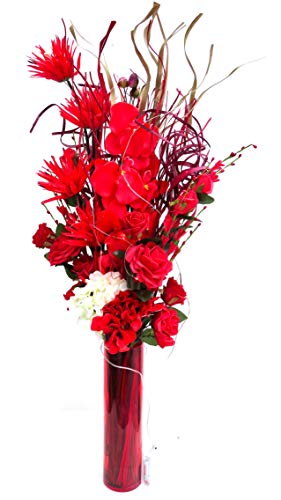 Link Products - Bouquet in vaso di vetro alto 95 cm con 20 luci LED Red & Cream