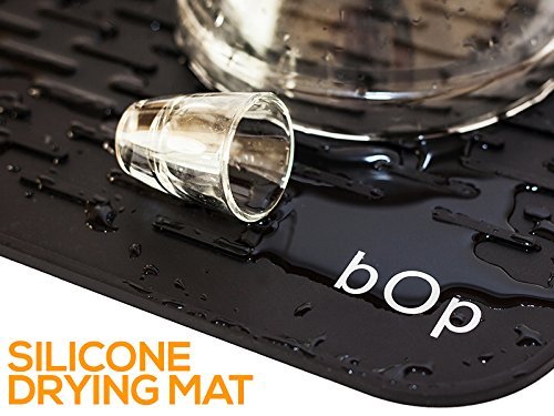 BOP Home Products Tappetino Scolapiatti in Silicone Premium Extra Grandi 55 cm x 45 cm, Piatto di essiccazione | Antibatterico, Sicuro per le lavastoviglie | Treppiede resistente al calore (XXL, Nero)