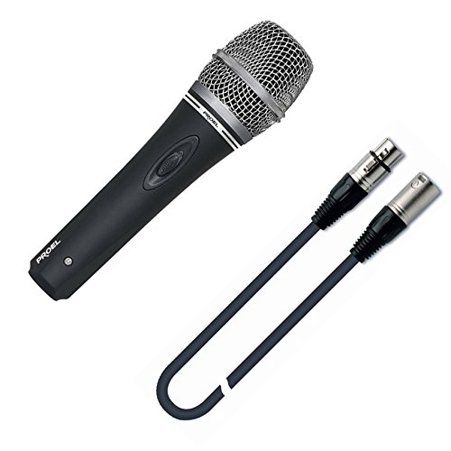 PROEL DM220 XLR microfono dinamico cardioide switch on/off + cavo xlr m/f 3mt x canto, karaoke, ecc