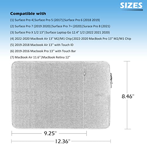 ProElife Custodia in tela per tablet portatile da 12 pollici per Surface Pro 4/5/6/7/7+8 2022-2014 Surface Laptop Go 1/2 12,5 "2022-2020 MacBook Air/Pro 13'' M2/M1 custodia protettiva (grigio)