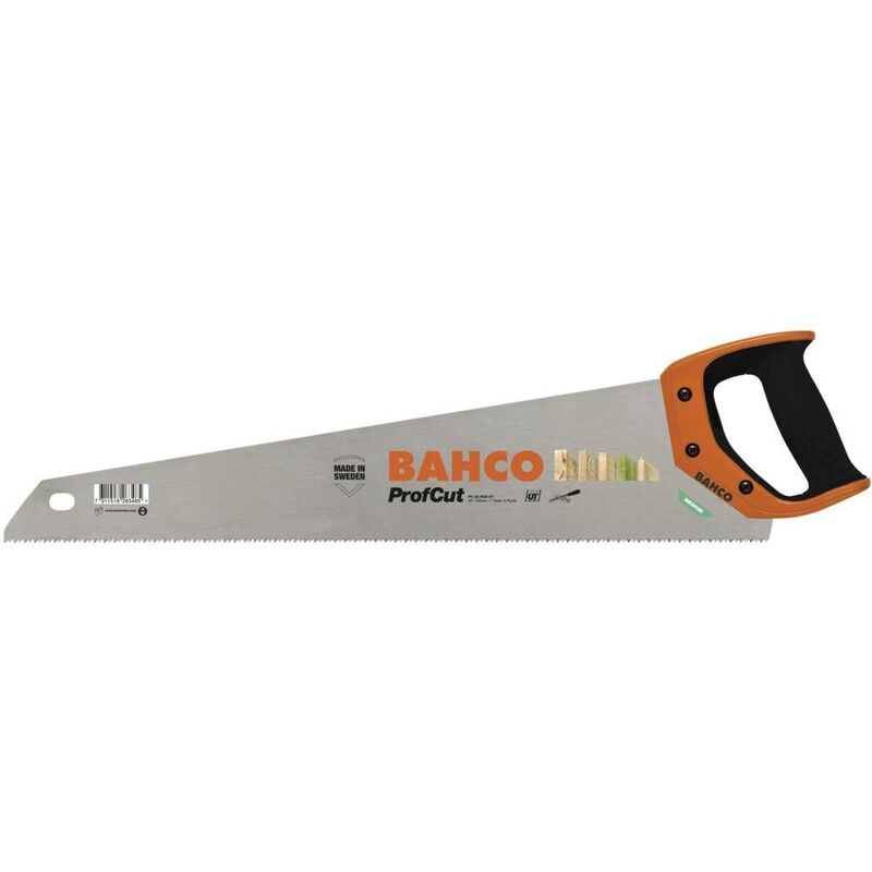 Dettagli tecnici Contenuto 1 pz. Tipo prodotto Sega a mano per legno Numero di denti: 7/8 Segaccio Profcut da 550 mm, affilabile 7/8 Zpz Segaccio per materiali di medio spessore. Dentatura universale a punte non temprate. Affilabile (ad esempio, con una lima 186). Impugnatura con perfetta presa in gomma e ottimo supporto al taglio. Impugnatura bicomponente avvitata, utilizzabile come guida per marcature approssimative di 45° e 90°. Incluso nella consegna null Requisiti di sistema null