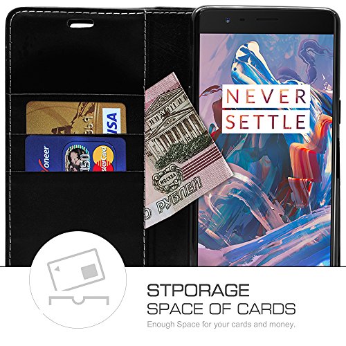 Profer Custodia protettiva flip della serie Premium Leder per OnePlus 3, realizzata in finta pelle in PU, con scomparto integrato per carte di credito e funzione di sostegno Leder-Schwarz