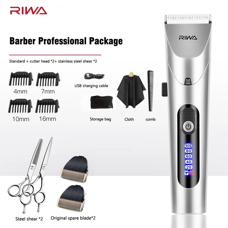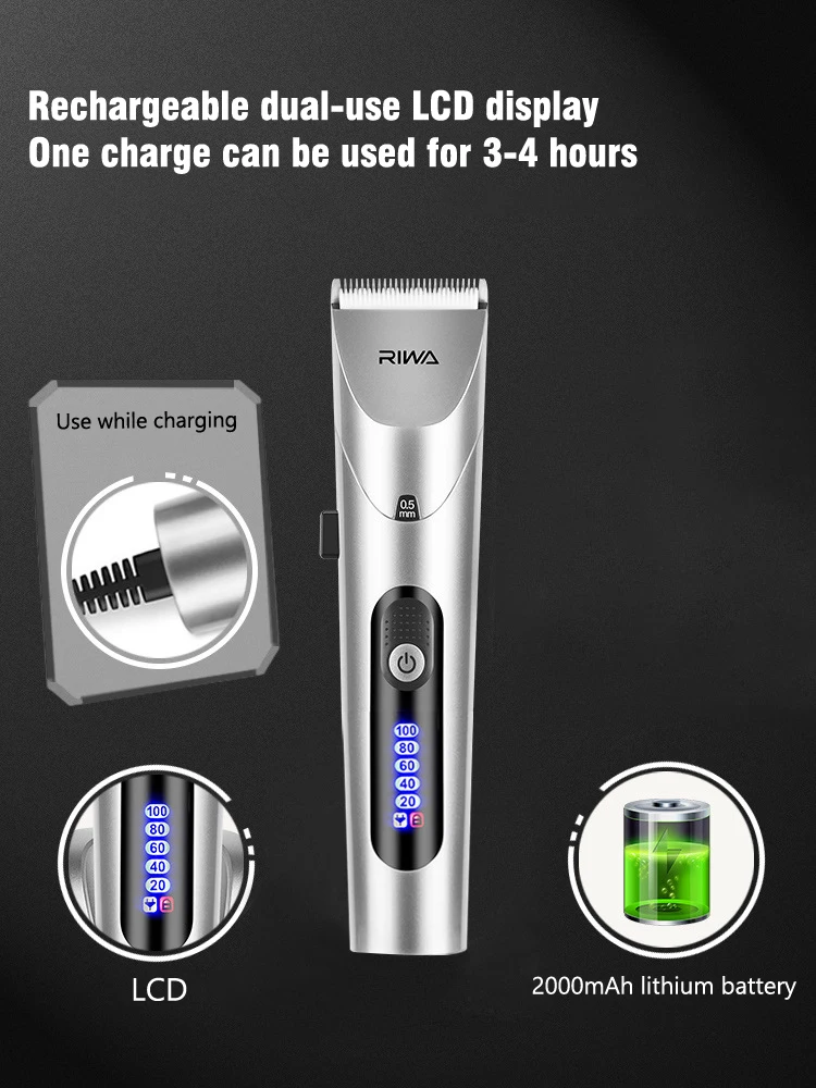 RIWA Professional Hair Clipper With Titanium Alloy Blades IPX7 Waterproof Hair Trimmer USB Men Kids Hair Shaver Lithium Battery